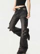 OREETA Y2K Style Flared Jeans Black